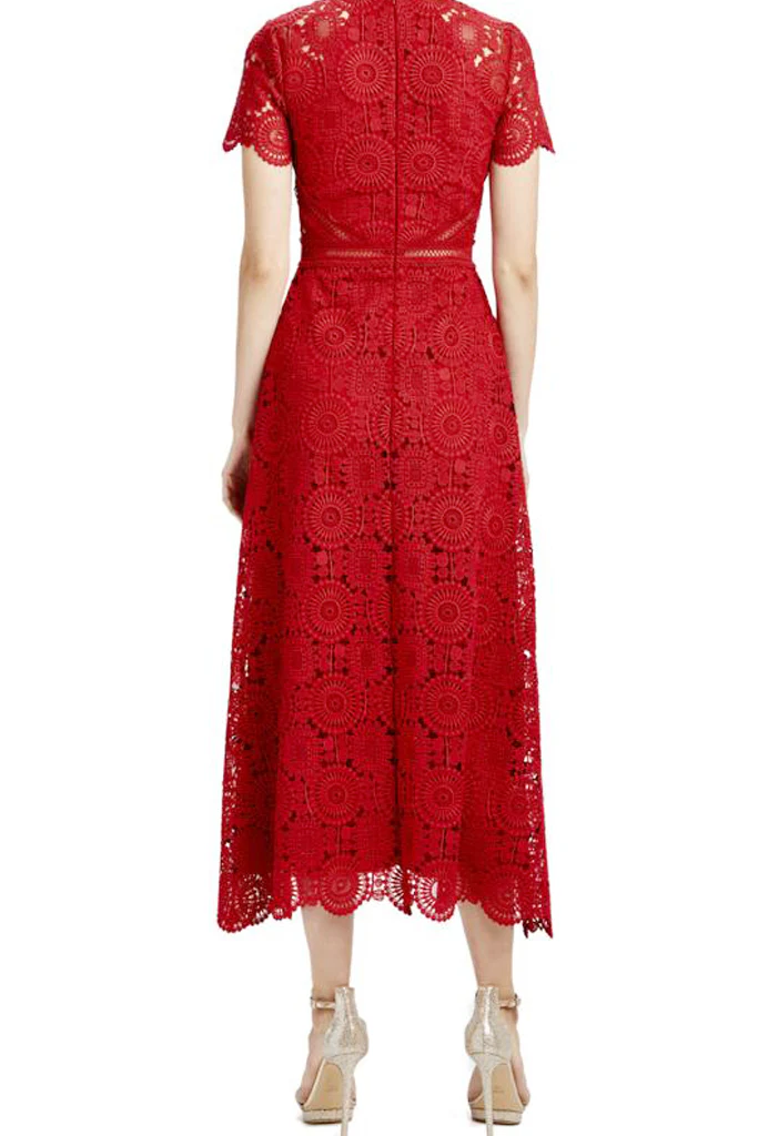 Georgina Lace Midi Dress in Red by ML Monique Lhuillier - RENTAL