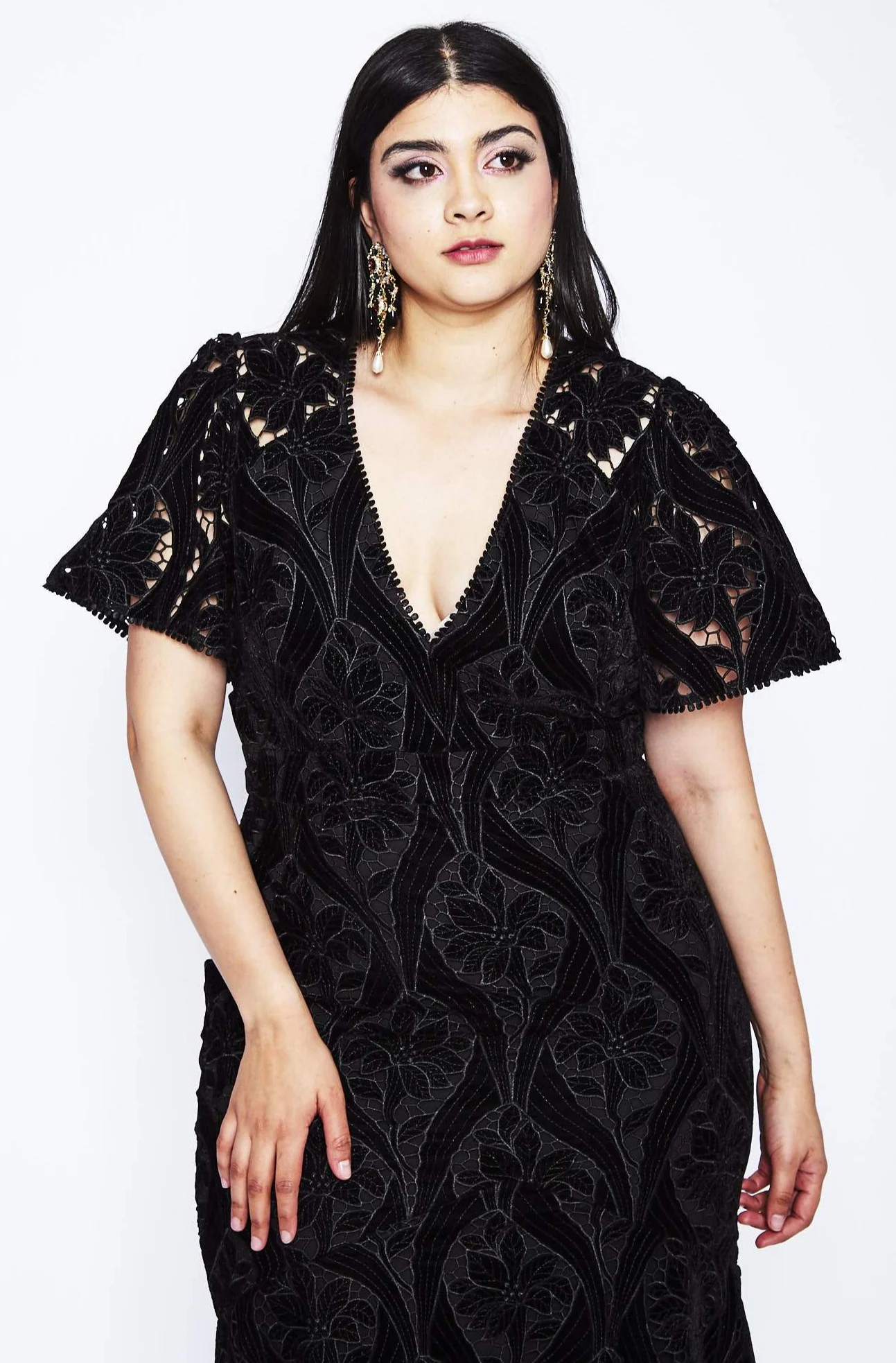 Virginia Velvet Contrast Midi Dress by ML Monique Lhuillier - RENTAL