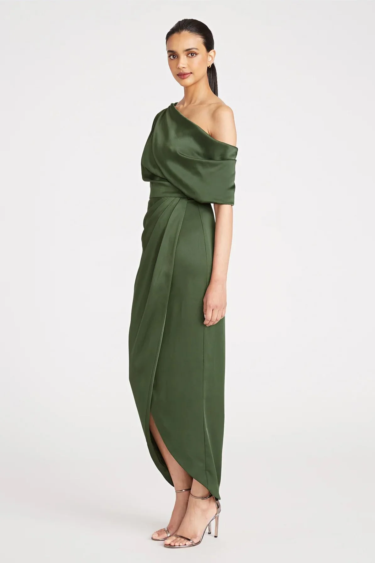 Rayna One Shoulder Draped Dress in Green by Theia Couture - RENTAL