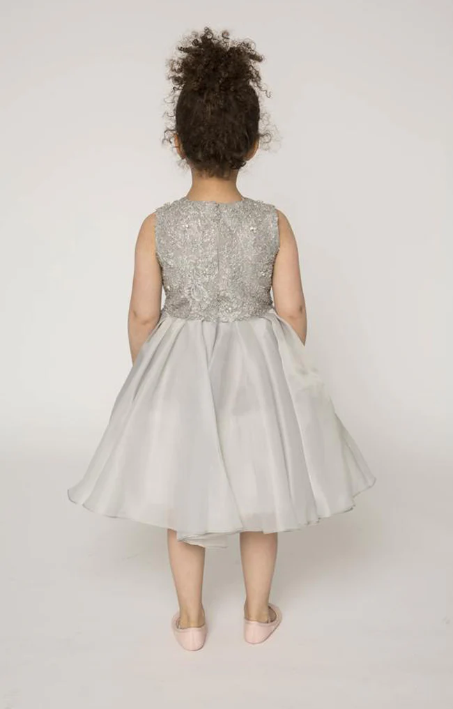ADORABLE OVERLOAD! Rent your mini me a gorgeous designer grey organza dress with shimmery embellished bodice for your next family wedding, their birthday or family photo! Also makes a stunning flower girl dress!